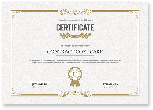 At Contract Cost Care, we believe in recognizing and certifying organizations that demonstrate excellence in contract management. Companies can undergo our audit process and, upon successful completion, receive a certification.